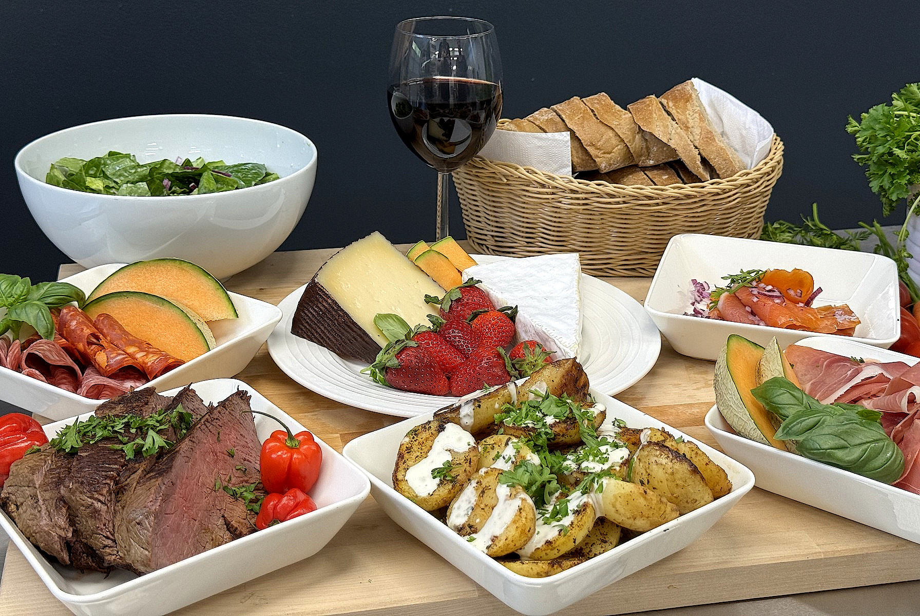 • Vihersalaattia, halloumijuustoa ja cantaloupemelonia (L, G)